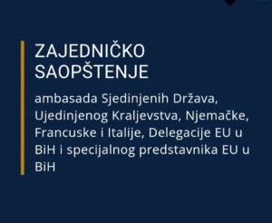 Zajedničko saopštenje ambasada Sjedinjenih Država, Ujedinjenog Kraljevstva, Njemačke, Francuske i Italije, Delegacije EU u BiH i specijalnog predstavnika EU u BiH 25/12/2024