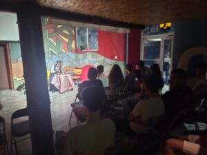 Gosti i gošće iz Indije, Irana, Brazila, Argentine i Njemačke uz moderiranje Damira Arsenijevića (Front slobode, Tuzla) i Borisa Filipića (OKC Abrašević) održali su diskusiju o strategijama otpora fašizmu i autoritarizmu u 21. vijeku, a pored diskusije predstavljena je publikacija i izložba naziva Beyond Molotovs koja donosi iz prve ruke preko 200 različitih aktivističkih i umjetničkih strategija borbe protiv represije i nepravde.
