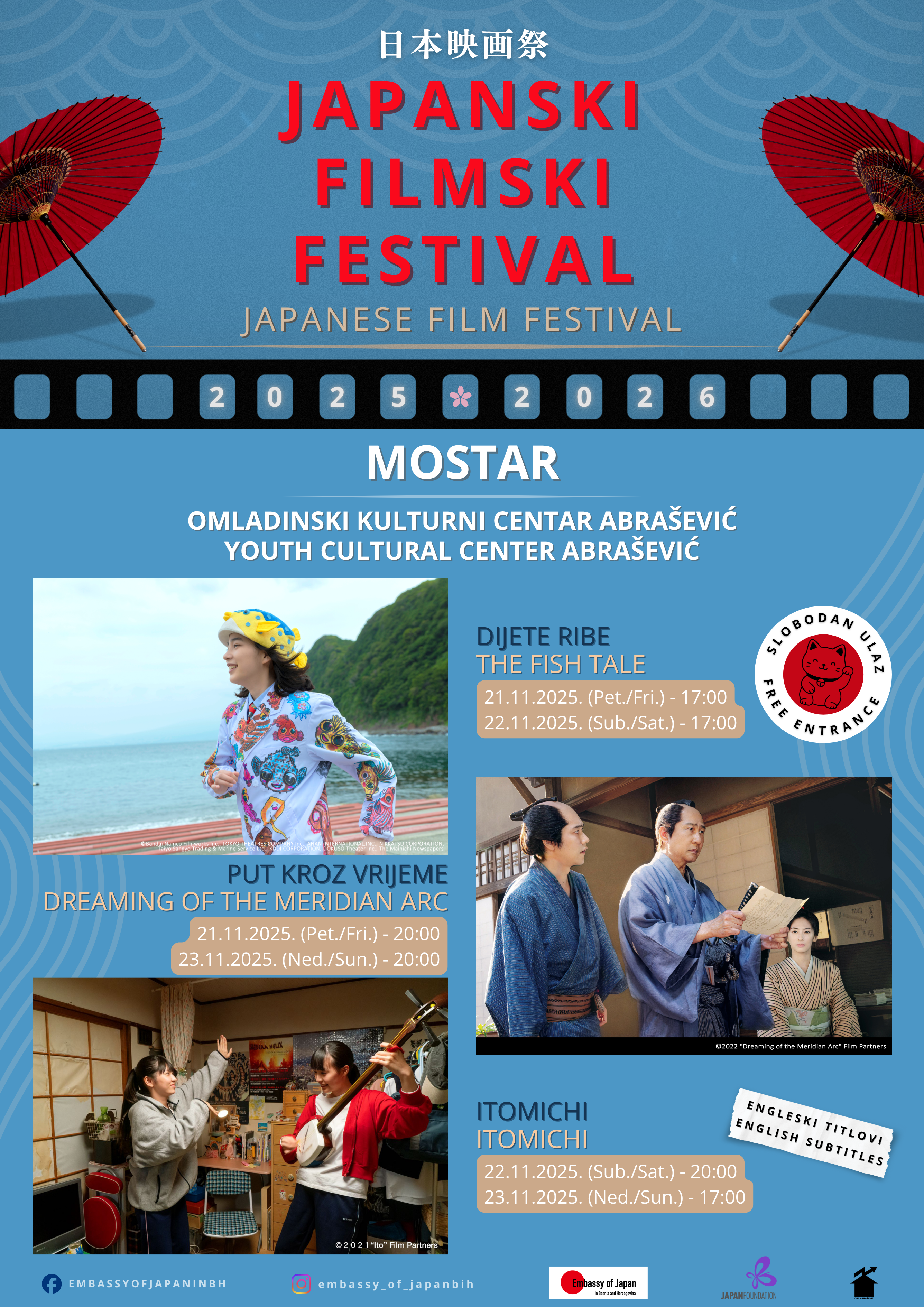 I ove godine u saradnji sa Ambasadom Japana u Bosni i Hercegovini i Japan Foundation, prikazujemo izbor iz aktualne japanske kinematografije. U periodu od 21. do 23. novembra u našoj sali možete pogledati: