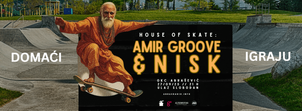 U novoj ediciji Domaći na Abraševom podiju igraju na house setove DJ-eva i skejtera, mostarskog veterana Amira Groovea i Niska (Mostar United Skateboarding Team). Ne propustite mostarski višegeneracijski house of skate, u zamjenu za nepostojeći skejt park u našem gradu.