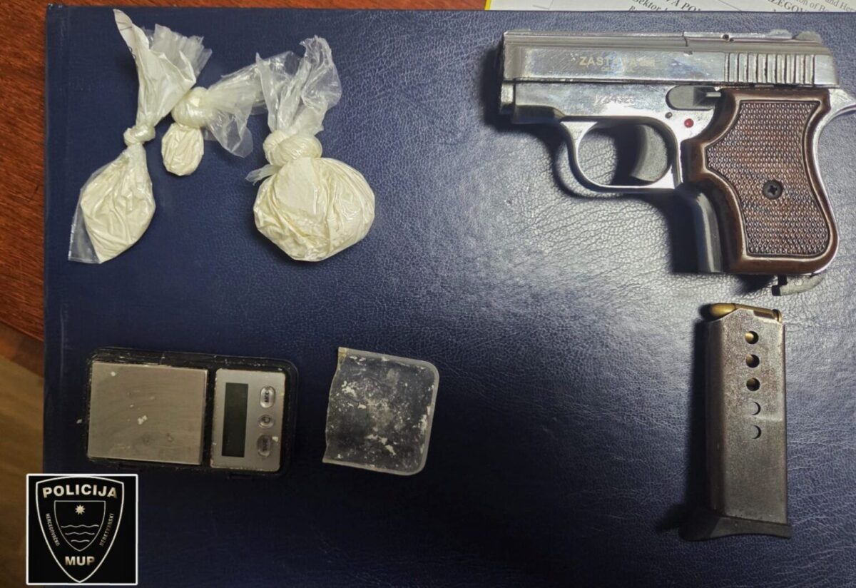 Tom prilikom navedeno lice dobrovoljno je predalo tri pvc kesice s neutvrđenom količinom NN bijele tvari koja asocira na opojnu drogu amfetamin, jednu digitalnu vagu za precizno mjerenje s vidljivim tragovima bijele materije te pištolj marke „Zastava“ s pripadajućim okvirom i municijom.
