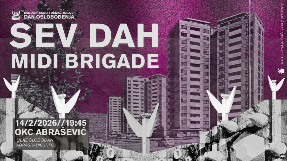 Te večeri u Abrašev kombinat zvuka dolazi Sev Dah, dijete Bosne, preseljeno u hladnoću sjevera. Vraća se s teškim, ogoljenim zvukom, technom koji ne traži dopuštenje. Ritmovi Berlina, Detroita i Birminghama iscijeđeni su kroz balkansku kost. Proletarijat bez parole, antifašizam bez zastave, samo puls koji melje ravno. Dijamant iz blata ili bijesni pas s lancem od sintetike. Nema nostalgije, samo sadašnjost koja lupa po rebrima. Uz njega će tu noć domaći MIDI BRIGADE također zagrijati svoje eksperimentalne tepsije. Ne propustite!