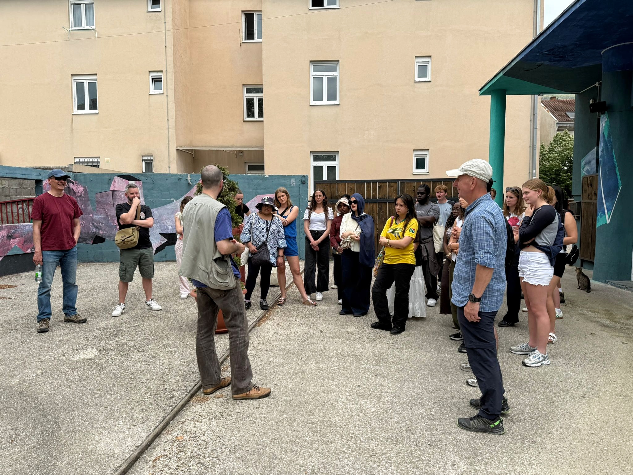 Osim drugara okupljenih oko AK Yutopia koji su nas imali ovoga puta priliku čuti online, Abrašević je u proteklim mjesecima u gostima imao studente sa Univerziteta u Birminghamu, Univerziteta u Manchesteru, studente Univerziteta u Utahu, predvođene profesoricom Shannon Peterson, kao i sa Univerziteta u Sjevernoj Karolini, predvođene našim redovnim posjetiocem, profesorom Jenkinsom,. Zainteresirani za društveno-politički život u Mostaru, iskustvo civilnog društva, izgradnju mira, lokalne zajednice i borbu za javni prostor. Abrašević je u aprilu bio mjesto i učesnik fokus grupe japanskog tima istraživača sa Univerziteta Waseda i Univerziteta u Hirošimi koji je u sastavu Yuji Uesugi, Mari Katanayagi, Dahlia Simangan i Xiru Zhao radio terensko istraživanje s fokusom na lokalni izborni proces iz perspektive civilnog društva. Treba spomenuti i posjetu mladih žena iz zajednica sa konfliktom zahvaćenih područja Gruzije koje su u sklopu sesije Feminističko liderstvo i akcija u fragilnim javnim prostorima u organizaciji UN Women podijelile svoja iskustva gradnje mira sa lokalnim aktivisticama. U organizaciji berlinske agencije Ex Oriente Lux Reisen predstavljanje našeg rada pripremili smo i za goste iz Njemačke, a najskorija posjeta bila je ona u organizaciji drugara iz berlinske organizacije balkanbiro s kojom sad već više godina obilazimo Partizansko spomen-groblje i razgovaramo o iskustvima i historijatu Abraševića.
