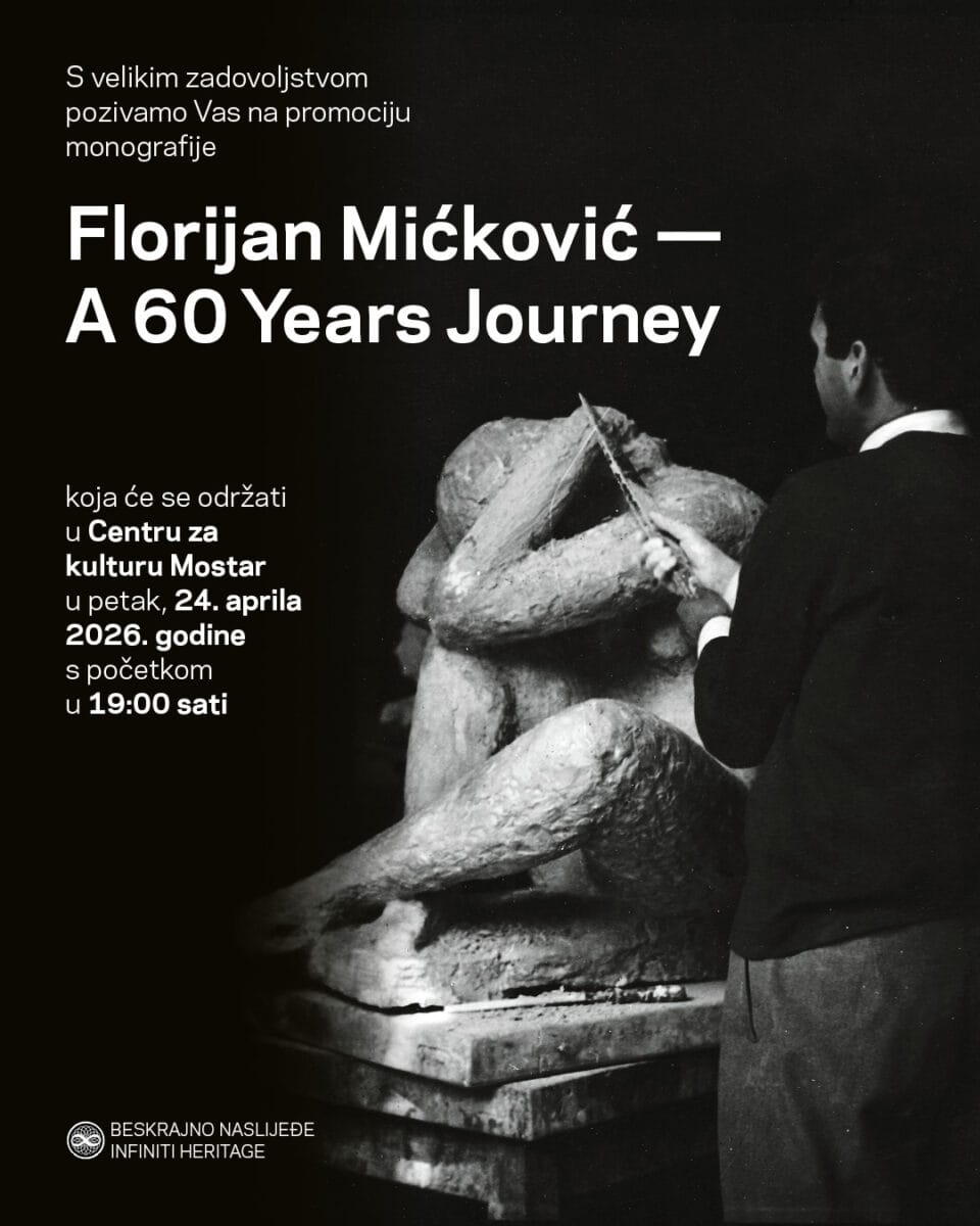 Promocija monografije Florijan Mićković – A 60 Years Journey prilika je prilika da se javnost upozna s ovim značajnim izdanjem i dodatno osvijetli umjetničko naslijeđe Florijana Mićkovića, a bit će upriličena u petak, 24. aprila u Centru za kulturu Mostar.