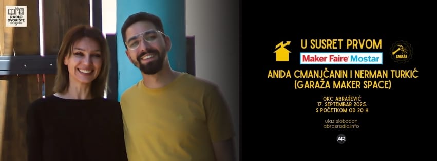 Maker Faire je najveći show (& tell) na Zemlji, festival izuma, kreativnosti i snalažljivosti, kao i proslava maker kulture i pokreta. Maker Faire okuplja fascinantne, radoznale ljude koji uživaju u učenju i vole dijeliti ono što znaju i mogu, mjesto gdje kreatori (makeri) pokazuju primjere svog rada i razgovaraju s drugima o tome. Mnogi makeri kažu da nemaju drugo mjesto gdje bi mogli predstaviti ono što rade. „Uradi sam“ (DIY) pristup često je nevidljiv u našim zajednicama, odvija se u radionicama, garažama i na kuhinjskim stolovima. Obično je izvan fokusa tradicionalnih umjetničkih, naučnih ili zanatskih događaja. Maker Faire okuplja takve projekte i čini ih vidljivijima. Organizator prvog Maker Fairea u Mostaru je Garaža, neprofitna organizacija i radni prostor u Mostaru koji okuplja zajednicu kreativaca motiviranih pozitivnim društvenim i ekološkim djelovanjem. Osim što pruža opremljeno i sigurno okruženje za mlade ljude, studente, umjetnike, mala i srednja preduzeća i uopće proizvođače – makere, Garaža nudi edukaciju iz širokog spektra vještina za 21. vijek. O potencijalima tehnoloških inovacija, biomimikriji, radu u zajednici i s mladima, ali i o prvom maker sajmu u Mostaru, u novom izdanju Radio dvorišta razgovaramo sa pokretačima Garaže i organizatorima Maker Fairea Anidom Cmanjčanin i Nermanom Turkićem.