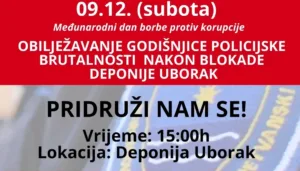 GI ‘Jer nas se tiče’ obilježava godišnjicu policijske brutalnosti nakon prve blokade deponije Uborak 06/12/2023