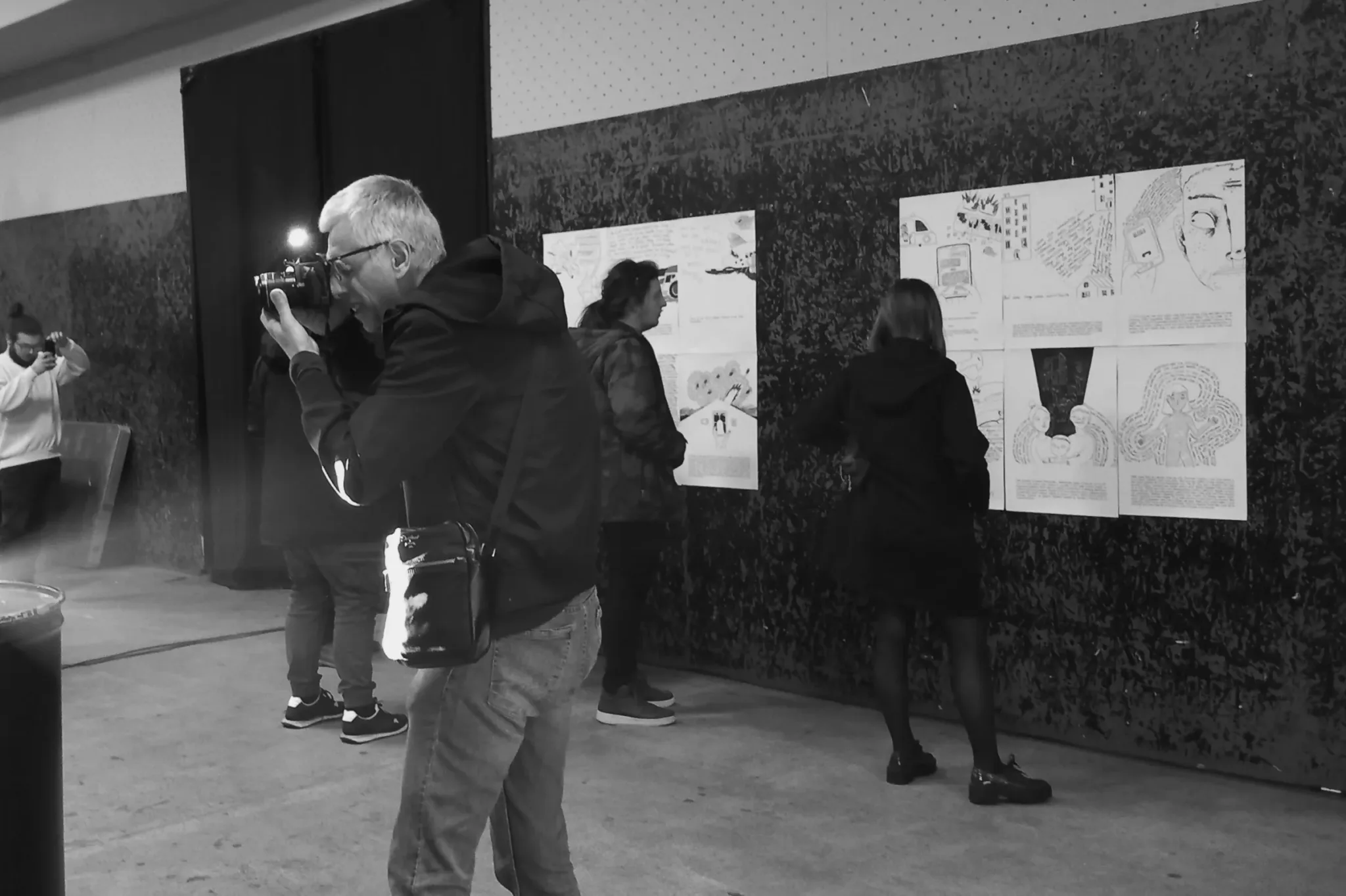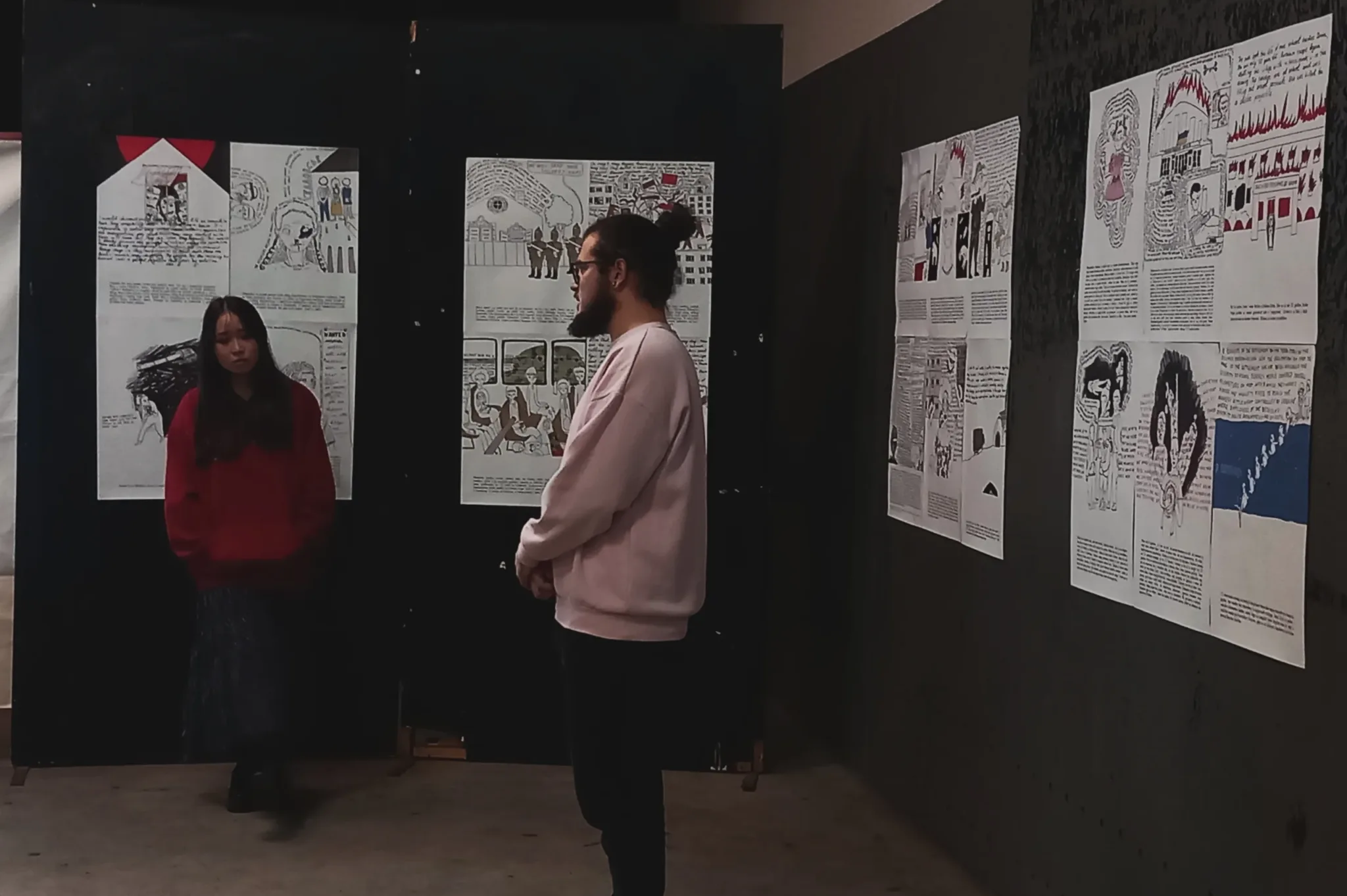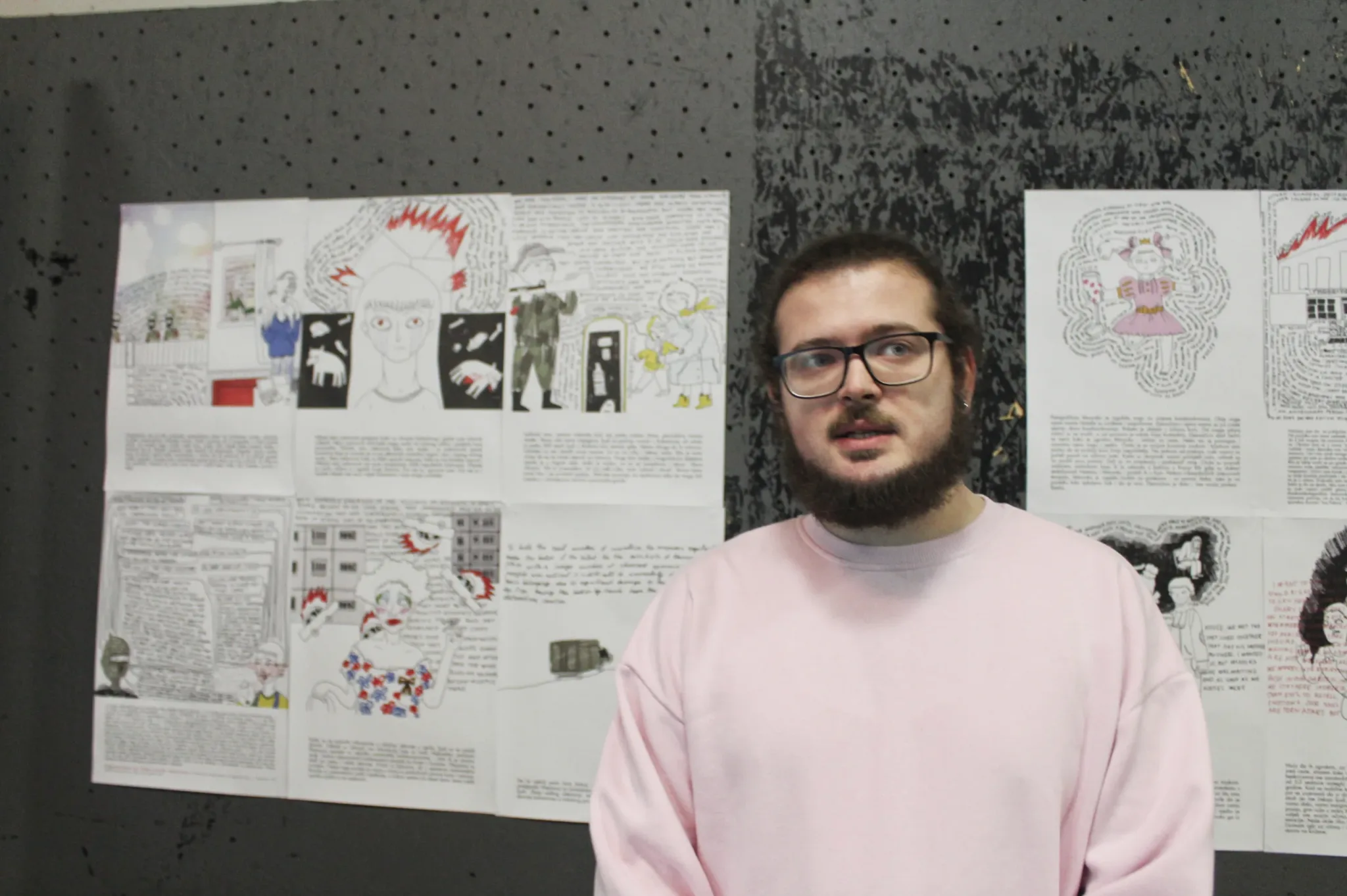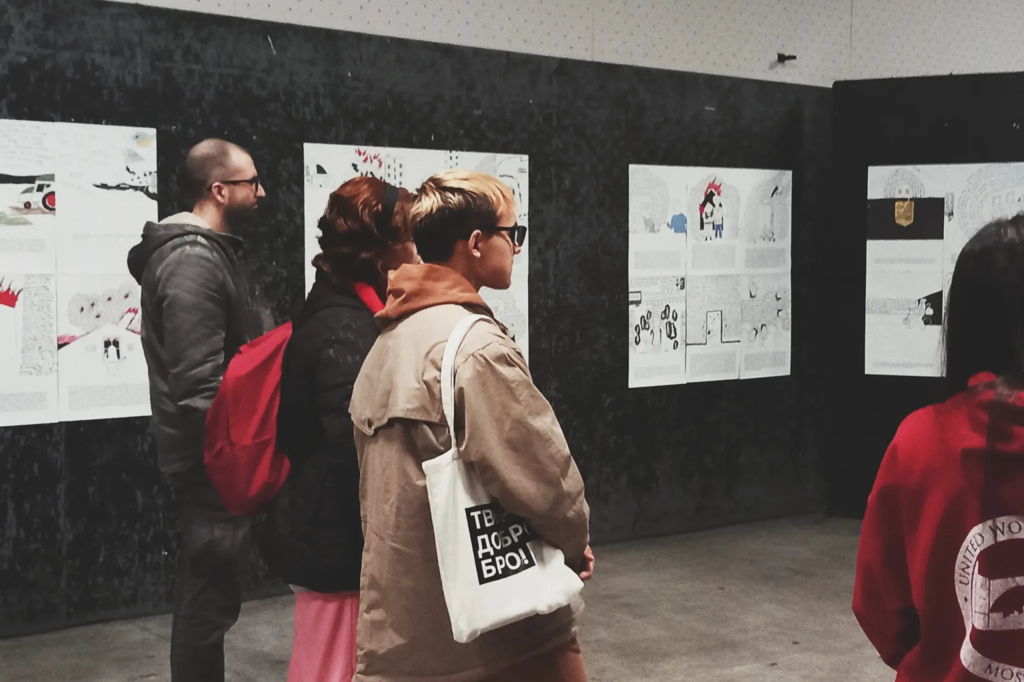 ‘U februaru 2022. bila sam prisiljena napustiti svoj grad, najprije sam otišla za Ivano-Frankivsk, a kasnije u inozemstvo. Nisam mogla nastaviti raditi na svojim projektima istraživanja gradova i arhetipa, ali nisam ni mogla sjediti i ne činiti ništa. Počela sam saradnju s organizacijom STAN. Naš projekt je podržala organizacija Mitost iz Berlina. To je učinilo da se osjećam sigurno u novoj zemlji. U početku mi je Yaroslav Minkin (STAN) slao priče svojih prijatelja. Onda se projektu priključila spisateljica Jana Malyga koja je počela prikupljati priče iz okupirane Khersonske regije, odakle ona dolazi. Moj zadatak je bio kreirati slike prema tim pričama, kako bi se dočarala njihova bit. Crteže sam napravila vrlo jednostavno, kako bi se uravnotežili slika i tekst koji je prati. Jednostavan crtež privlači gledatelja, ali kad priđe bliže, mora pročitati teške priče. Tekst je namjerno napisan da ga je teško čitati, kako bi se izazvala empatija prema pričama na slici.‘, poručila je umjetnica Masha Vyshedska.